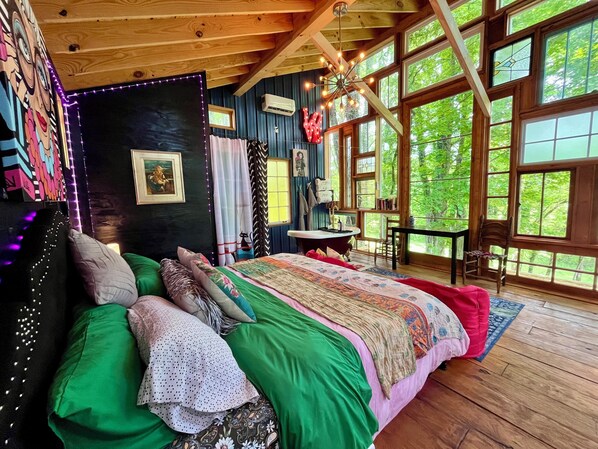 You'll love this captivating treehouse nestled quietly in the woods, surrounded by seasonal wildflowers. This Treehouse is a one of kind eclectic experience. You’ll find yourself immersed in total relaxation with plenty of books, games, a record player with all the best old school Vinyls. You will be surrounded by plenty of mood lighting to fit the music and enhance the vibe.