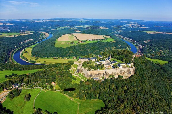 Ferie midt i Dresden og likevel stille. Med bybussen (50 m gange) er du noen minutter i sentrum. Med bybusslinje 63 (50 m) kjører du opp til slottet Pillnitz med stoppested i Loschwitz ved Blue Wonder og på den første taubanen i Tyskland, som bringer deg opp til White Hart. Luisenhof inviterer deg til å somle, nyte utsikten over den blå vidunderen og byen før du kjører videre til slottet.
