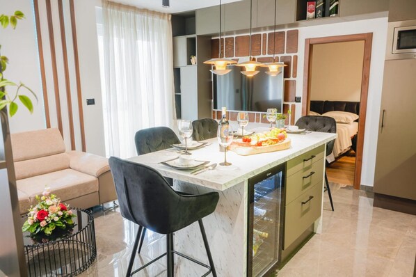 denne leiligheten ligger i Drnis. Et par lokale landemerker er Gospe van Grada kirke og St Mikaels festning, mens Krka nasjonalpark og Skradinski-fossefallene kan friste med vakre naturomgivelser. St. Laurentius-klosterets middelalderske middelhavshage og Sibenik akvarium er også verdt et besøk. Se vår reiseguide til Drnis