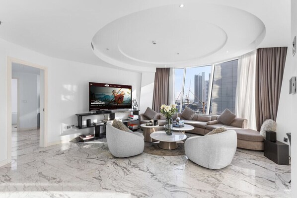 Denne leiligheten ligger i Dubai sentrum og 2 kilometer unna Dubai vannkanal, Dubai Mall og Dubai-fontenen. Burj Khalifa ligger 2,4 kilometer unna. Dubai Trolley Station 1 trikkeholdeplass ligger 16 minutters gange unna og Dubai Trolley Station 3 trikkeholdeplass ligger 17 minutters gange unna.