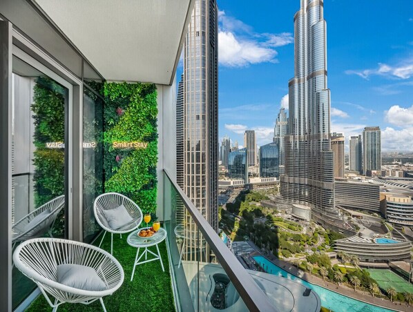 ★ BALCONY ★ Enjoy your dinner with a stunning view of Burj Khalifa from your balcony. ✔ Chairs ✔ Table