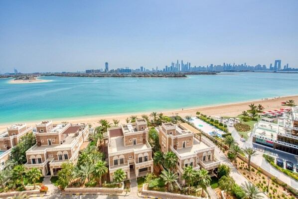 Denne leiligheten ligger i bydelen Palm Jumeirah i Dubai. Marina Beach og Kite-stranden er verdt et besøk hvis du vil oppleve vakre naturomgivelser, men hvis du heller vil få med deg noen av områdets populære attraksjoner, kan du ta turen til Aquaventure vannpark og Wild Wadi badeland. Dubai Aquarium & Underwater Zoo og Global Village er også verdt et besøk.