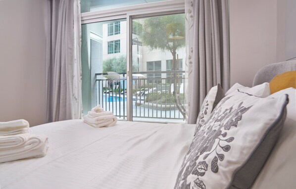 Vista Downtown, Chic Poolside 1BR, 10 min Walk to Burj Khalifa, Pool and Gym.