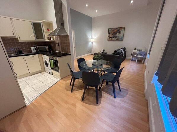 The propery is clean, spacious, and very centrally located, just north, across the river, from the Temple Bar neighborhood. The street is very busy with foot traffic basically from sun up to sun down (which is 6am-10pm during the summer months.) The apt is quite despite the foot trafic below. The closest tram station is about a 5 minute walk. There are ample options of ethnically diverse food & a marvelous Irish pub, The Celt, just steps away from the outside door access. The only draw back was mentioned in the title: although in the description of amenities, and in the photos it shows a clothes washer, there is not one in the apt. This washer has been removed from the kitchen area and just a hole remains. If you are counting on having this convenience, like i was, make sure they have replaced it before you book this unit.