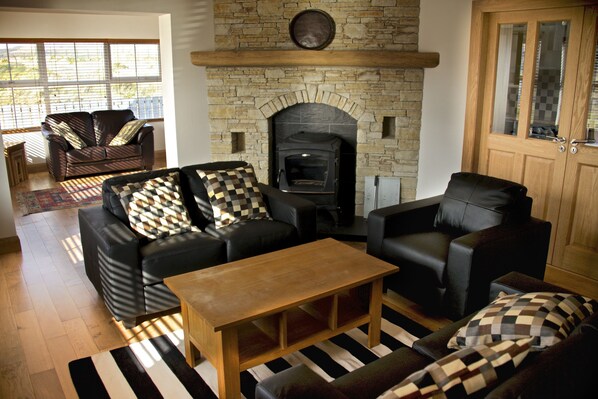 Hytta har plass til opptil 8 personer i 4 romslige soverom. Hvert soverom er innredet med luksus eik senger og god kvalitet dyner og sengetøy. Den store åpne plan første etasje av hytta kombinerer den enkle moderne livsstil med komfort. Midtpunktet er en 'lokal' peis.