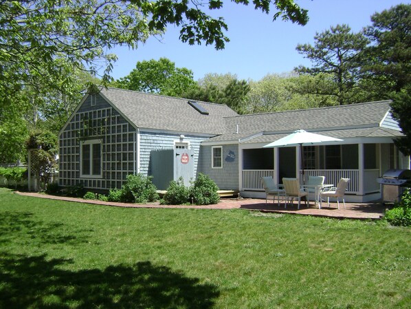 Vi avsluttet en oppussing av innsiden av denne eiendommen i oktober 2009. Huset er koselig, og kan huse opptil 6 personer. Kjøkkenet og stuen er grenser for lett underholdende. Hovedsoverommet har egen inngang som går ut til bakgården og utendørs dusj. Det er ca 950 kvm. Ft. Ligger på en 1/3 acre mye på Vineyard Haven Rd. Verftet er delvis inngjerdet med noen landskapsarbeid. Vi re-seeded gården etter å ha lagt en frittliggende garasje. Det er en back veranda med 2 stoler å slappe av på, en murstein patio, og en utendørs dusj. Det er også en hengekøye i bakgården også. Plasseringen av eiendommen er på sykkelstien og buss rute. Sengekontacket Pond ligger ca 2 kvartaler unna. Flott for kajakker, padleplanker og hundevennlig! Huset ligger ca 2 miles fra sentrum av Edgartown.