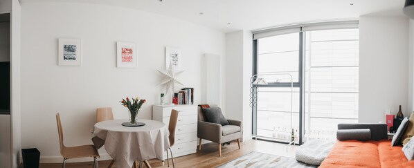 Bildegalleri av Moderne, luksuriøst ettromsleilighet på Quartermile i hjertet av Edinburgh