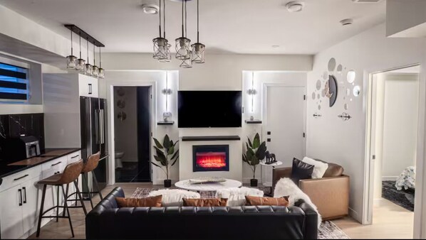Guest access Guest Access Guests have full access to the entire apartment, including both bedrooms, bathroom, kitchen, living area, and laundry facilities. The designated parking spot is also available for your use. You can freely enjoy all modern amenities, appliances, and special lighting throughout the apartment.