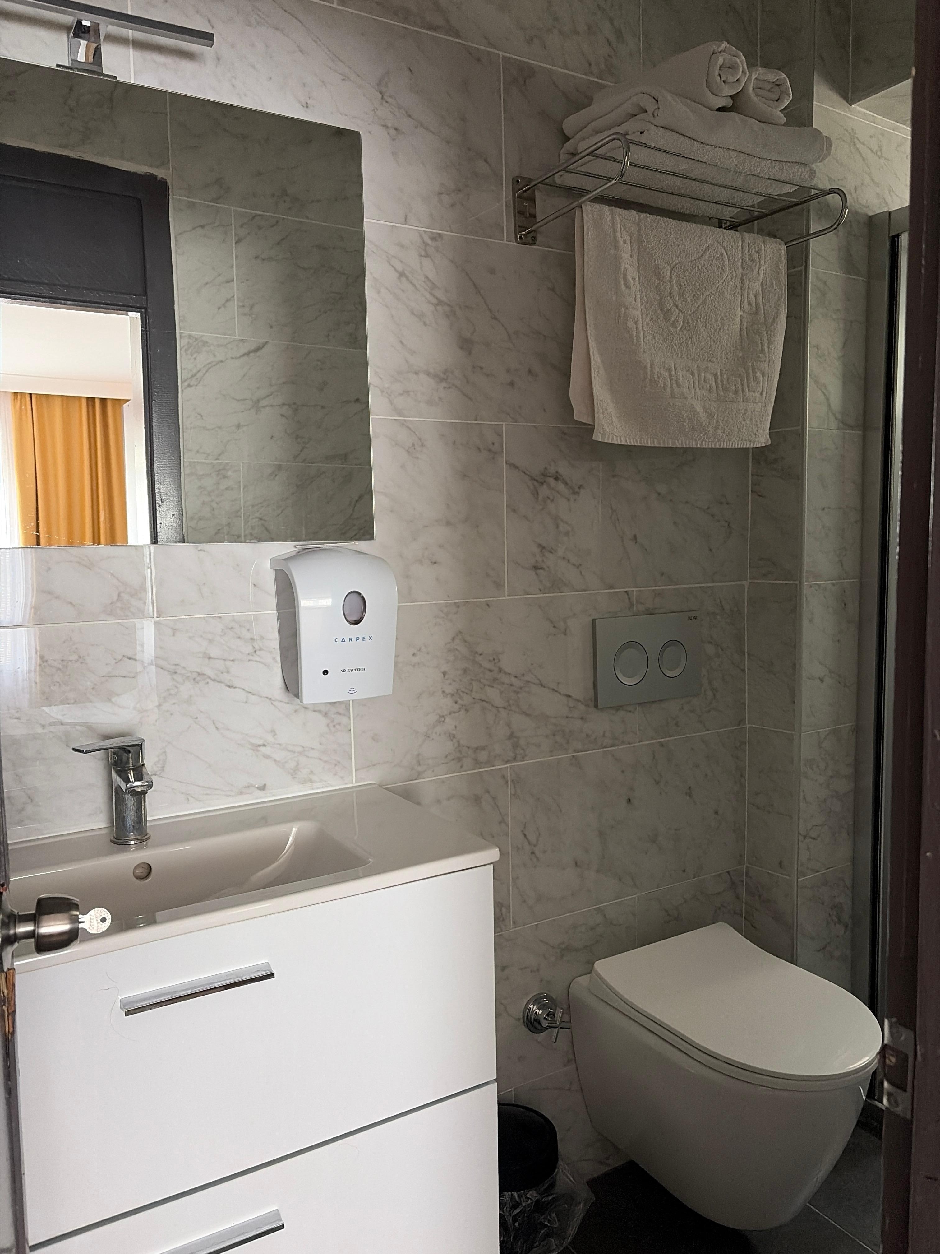 Genel olarak her şey güzel,özellikle kahvaltı servisi ve hizmet çok keyifli. Olumsuz olarak banyo ve dizaynı gösterilebilir. Banyo ‘da askı yok, duşa kabin yok dolayısıyla duş alınca her yer ıslak tuvaleti kullanmak zor oluyor,biraz da bakım istiyor.