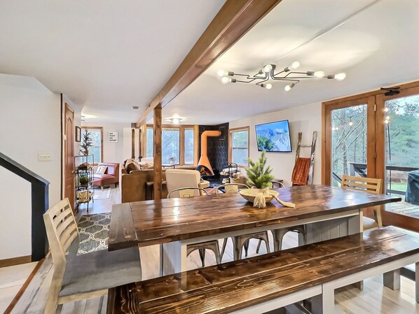 -Hjemmet har benkeplater i granittkjøkken og oppvarmede tregulv overalt. Nyt åpent konsept i første etasje med stort spisebord for 10+, seksjonssofa i skinn, Roku 4K TV og bærbar DVD-spiller. Separat inngangsparti med stor inngangsvei. Veldig rent og privat. Det er WIFI, FuboTV, foosballbord, darttavle, spill og TV på barnerommet (ta med ditt eget spillsystem). -Nyaktig dekorert. Nyt den 2 dekar store tomten med Weber Grill, utendørs ildsted. Alle hjemmets fasiliteter, kaffetrakter, UV-filtervann, strykejern, tørketrommel, alt sengetøy følger med, vaskemaskin og tørketrommel. 2 mil fra Holiday Valley og Holimont.