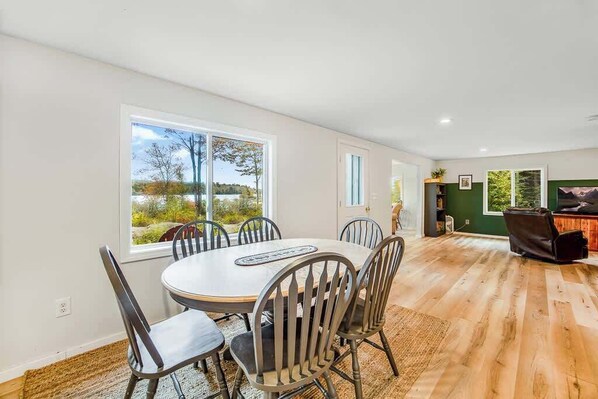 Our family booked this property fairly last minute for the busy summer months (1.5 month in advance) in order to visit Acadia National Park. The setting was peaceful, with its own private dock which we loved to spend time out on. The lake was clean, and quiet. It was great for stargazing, or listening for loons, which we were lucky enough to hear. The house description says it has 3 bedrooms, but the layout is such that it is really 2 bedrooms with doors, and the third is really the landing/foyer at the top of the stairs. Not a big deal, but worth noting. Also, the only bathroom is on the first floor, so if traveling with small children or anyone with mobility issues, it may be a consideration. These are not negative things, but something I always find helpful to read in reviews. The house was clean, with beautiful views. The AC was sufficient, and we used fans provided in the bedroom as well on the really hot days to circulate the window unit air from one bedroom to the others. It was about an hour drive into Bar Harbor, but we enjoyed pulling up to a quiet setting at the end of each day. All in all, I would not hesitate to stay here again.