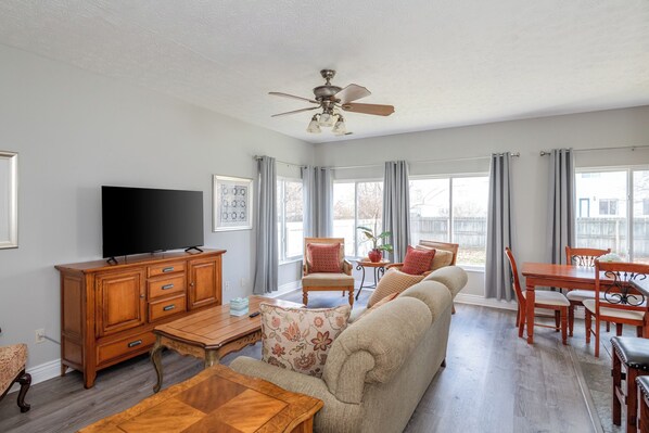 ✔ Cozy living room with a smart TV and plenty of seating for everyone.
