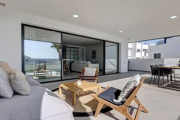 This stunning property is located in the prestigious 'Mirador de Estepona Hills' urbanisation, one of the most exclusive estates along the Costa del Sol. This first floor apartment has three bedrooms. The Master bedroom is en suite and has ample storage space. They second is also a double whilst the third has twin beds with a shared bathroom across the corridor. The open plan living space flows perfectly to the large terrace. The property is west facing perfect for afternoon sun! The terrace has mountain views, with partial sea/Gibraltar view. There is a separate work space with monitor, keyboard and mouse provided. There is underground parking with an elevator to the apartment. There are also electric parking stations within the urbanization. Mirador de Estepona Hills is one of the Costa del Sol's most exclusive urbanisations. The estate features two large swimming pools surrounded by Balinese beds and sun loungers. Both pools have separate children's pools and are serviced by their own pool bar and restaurant. On site there is also a boutique delicatessen which also has it's own terrace. Should you need a larger supermarket, there is a Mercadona a mere 2 minute drive away. From the southern entrance to the urbanisation its is possible to walk into Estepona town in 15/20 minutes. By car it is a 5 minute drive. Clients also have access to 'Los Reales Sports Club' which has a fully equipped gym, pádel clubs and restaurant. Access is available for a subsidised rate of 5 euros per person, per day. Padel courts are free between 7-10am and 13-16pm. Outside of these hours they are able to rent with a 50% discount. Both Malaga and Gibraltar airports are under an hour away by car. Estepona, Puerto Banus and Marbella are a 5/20/30 minute drive away respectively. Out of office hours Check-in is charged the following: 9pm - Midnight 20 euros Midnight - 2am 40 euros After 2am 60 euros This amount is payable in cash at the property. For infants, it is also possible to rent cots (50 euros) / high chairs (20 euros). These amounts are also payable in cash on check-in. Please let us know in advance if you would like to rent these items.