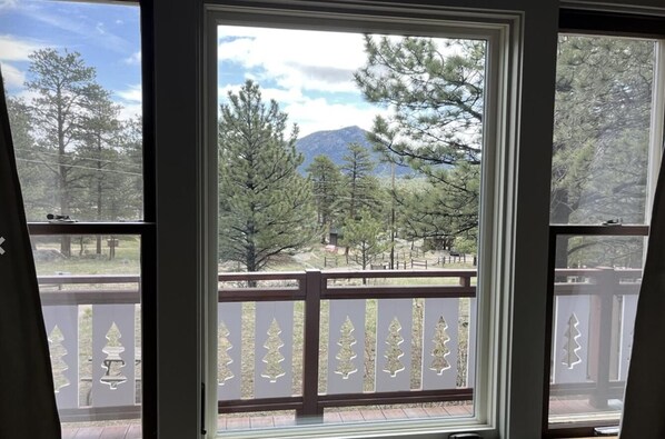 Situated at the base of Eagle Cliff Mountain, the property is set in a quiet, spread-out residential neighborhood away from the bustle of town. Wildlife sightings are common, adding to the authentic mountain experience. Downtown Estes Park is approximately 2.5 miles away, the Beaver Meadows entrance to Rocky Mountain National Park is less than 2 miles, and you can walk up the road to access hiking trails directly into RMNP.