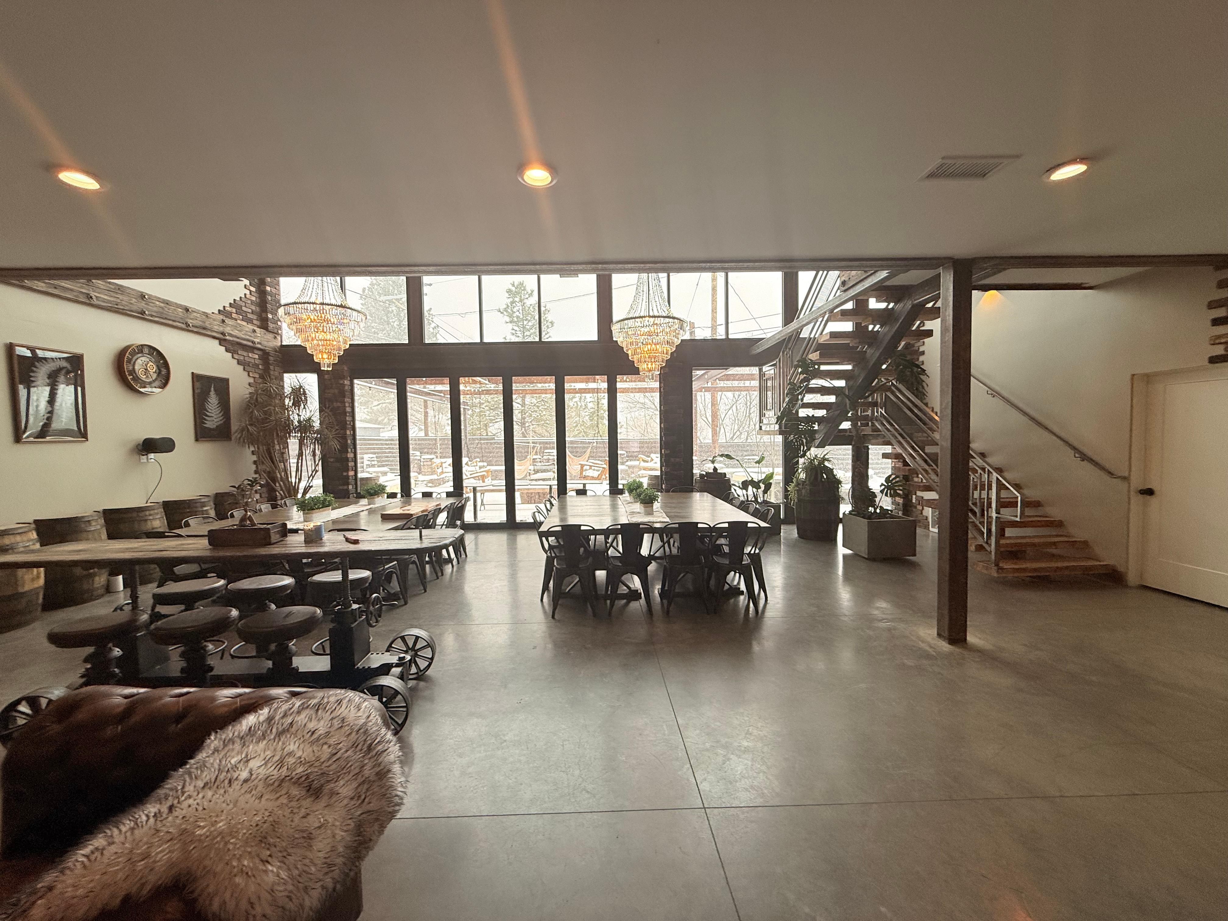 Massive I-beams sparkle from hundreds of crystals from the French Empire chandeliers while time worn brick pillars host wandering vines. Soaring skylights and Old English Chesterfield sofas invite friends to reconnect and laugh in alcoves of sun-drenched atriums. From the chef's kitchen above, to the stainless catering kitchen below, the natural stone, oak, and foliage textures all nod to the owner's garden-to-table greenhouse roots. Brick & Beam bestows an extraordinary sense of place that communicates just how much you appreciate your guests form the moment they arrive. It's a space with soul built to gather people with soul.