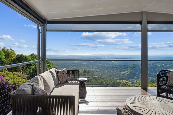 Set high on the Blackall Range, this beautifully appointed home offers uninterrupted views to the coast, surrounded by lush gardens and tranquil birdlife. The property is situated close to the popular wedding venue Flaxton Gardens, just a four-minute drive from Montville village, and within walking distance to the picturesque Kondalilla Falls National Park.