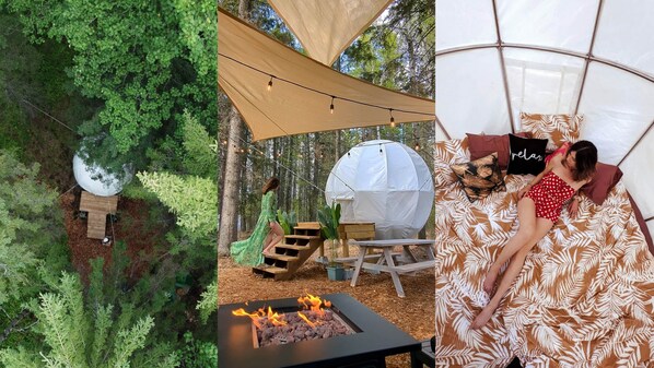 Please note: We have 3 geodomes and 2 cabins on our property (and 1 seasonal treehouse cocoon), approx 150 ft away from each other. There may be other glampers and pets on the property during your stay.