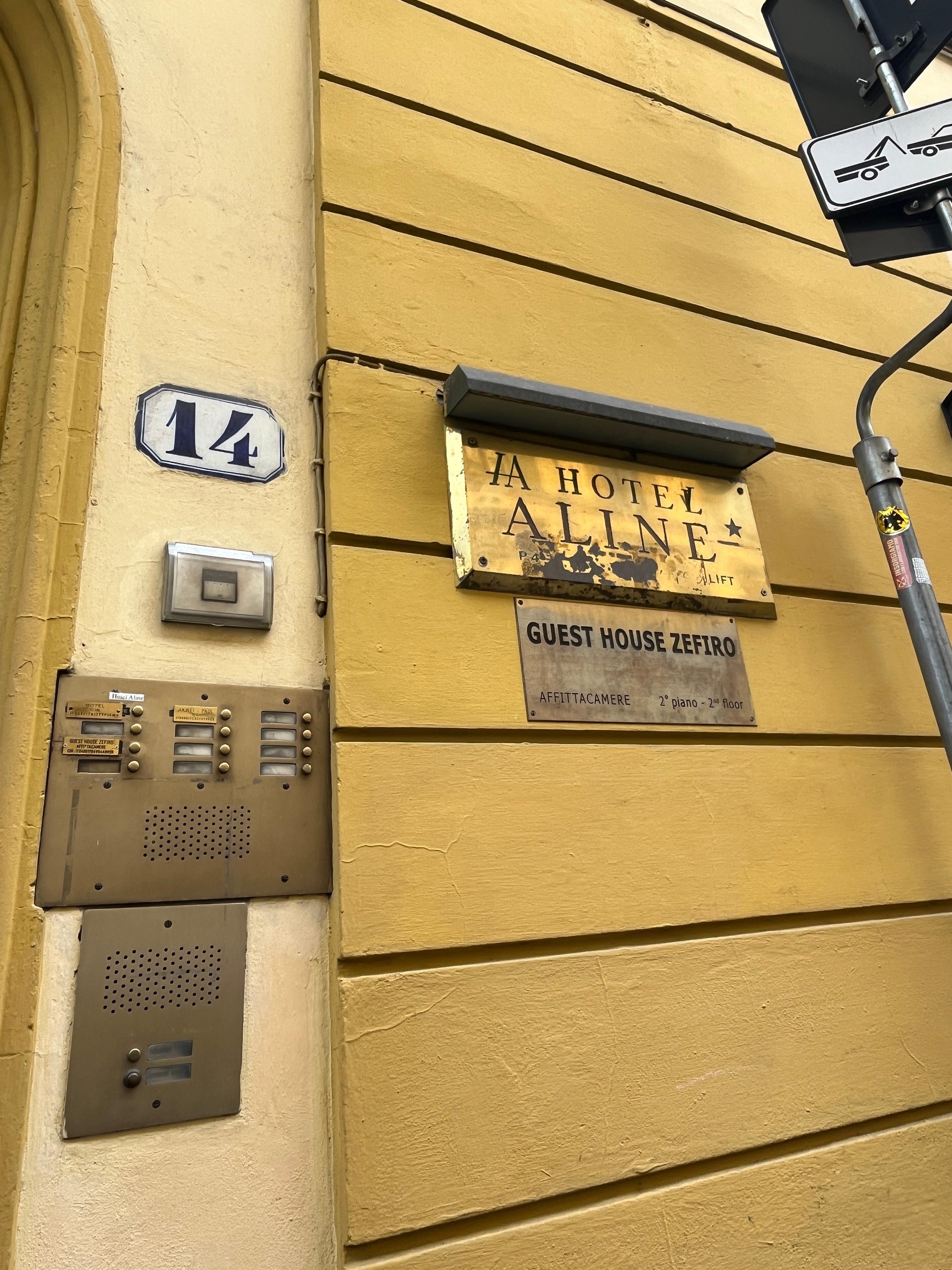 Use hotel Aline on GPS instead of address because there are two different numbers on the wall. Look for the big square blue number 14.