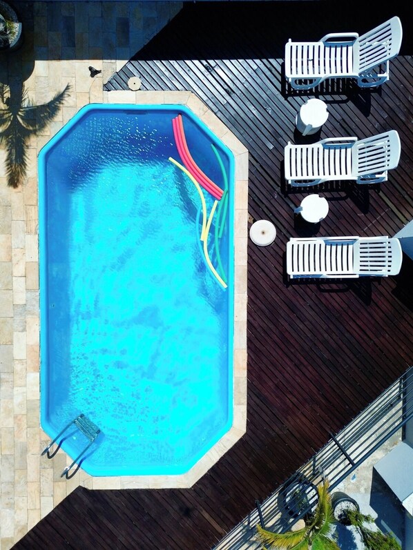 Ja, dette overnattingsstedet har et utendørsbasseng. Bassenget er tilgjengelig fra kl. 10.00 til kl. 20.00.