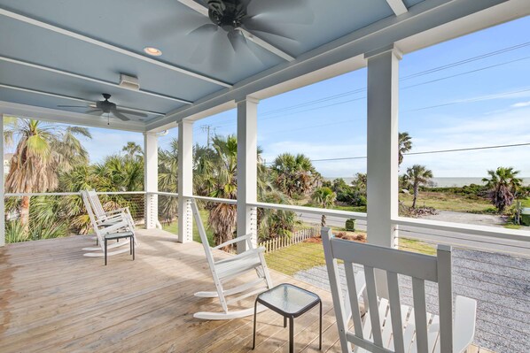 This amazing, raised oceanview home is right across the street from the beach and close to just about everything Folly Beach has to offer! First thing's first: drink your morning coffee on the front porch while taking in the ocean views then use the full kitchen to make a quick and easy breakfast for everyone to enjoy at the breakfast bar or large dining room table. Next, pack some lunches because it's going to be a full day of sun and sand down at the beach. Later, use the free WiFi to plan out tomorrow's adventure then let someone else cook up a seafood dinner on the gas grill while you relax for the rest of the evening out on the porch; you've earned it!