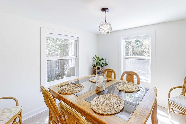 This was a lovely little rental that was a very short walk to a quiet beach (quiet in March; maybe it gets busy in July but I'm certain it's never TOO bad). Anyway, my wife and I looked for a place that would allow dogs but also that was a "single building", meaning it didn't share walls with any occupied space as our dog is a wonderful animal, but a rough "before-us" upbringing left her with some real anxiety issues over things like strangers, loud noises, other dogs, etc. SO this rental seemed perfect for us. HOWEVER the main bedroom shares it's left wall with the entrance for a separate unit that you can hear people walking through every now and again - it's not super loud or anything, and if it had just been my wife and I, I would have forgotten about it already, but it definitely freaked our dog out. It's hard to tell from the photos, but there is a second door off to the left that goes to a separate apartment. And additionally, the next house over from this rental often left their dog off leash to wander around the cul-de-sac where the road dead ends, which is fine with me since no cars go there and it's essentially their front yard BUT taking our dog out for a walk became a real "okay wait...wait...okay now go!" type of thing. And of course when cul-de-sac dog saw us, she wanted to come say hi which only elicits barking and fear from our dog. Kind of a mess. I'm not interested in blaming anyone or deciding someone is at fault, I just want to let anyone with skittish or emotionally worried dogs that this rental has a couple small hiccups, but very specific ones. If your dog is friendly and likes attention (canine or otherwise) you'll be fine here.