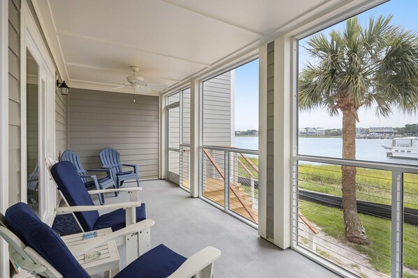 Renovated from top to bottom during the winter of 2019, this first-floor villa in Mariner's Cay offers a beautifully polished living space with magnificent views of the Folly River and the neighboring marina. Take a seat on your private patio to feel the breezes sweep off the water or catch a glimpse of passing dolphins, and enjoy access to community amenities that include a swimming pool, a dock on the river, and tennis courts.