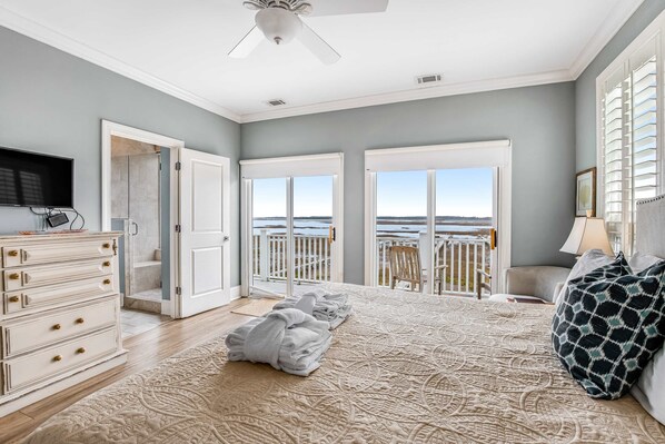 Once you experience the 360 views from the show-stopping windows, bedrooms, and roof deck of this home, you will never want to leave. This home features interior upgrades including new floors, kitchen counters in the full kitchen, new furniture, rugs, and interior paint. Lounge comfortably thanks to the central air-conditioning before heading to the beach or the creek from your private dock (perfect for kayaks, fishing, or crabbing) just steps away. Wash off from your sandy excursions in the outdoor shower. Furnished balconies offer a pristine view of the sunsets there, serving as an ideal way to end your day. Free WiFi, cable, and TVs in every room round out the home's entertainment options.