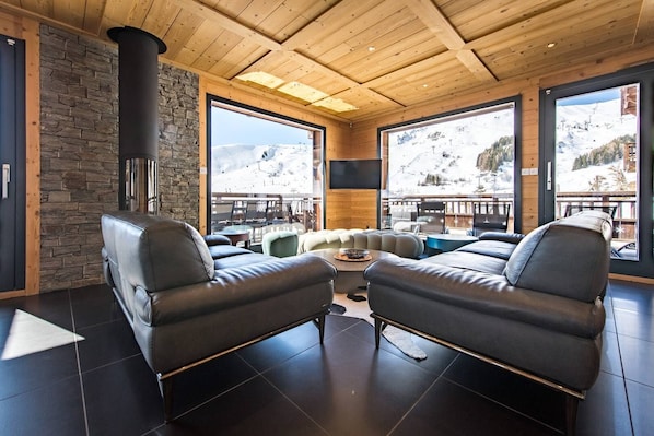 Hytta består av en stor stue som vender ut mot en terrasse og den fantastiske utsikten over Aiguilles d'Arves. Stuen har sittegruppe, spisestue og utstyrt kjøkken. Kjøkkenet er utstyrt med all nødvendig komfort (oppvaskmaskin, induksjonstopp, stekeovn, mikrobølgeovn, ...) mens stuen har TV-område.