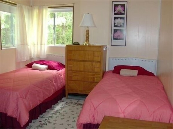 We were able to get away from our every day hustle and bustle of our busy lives and enjoy such a quiet, beautiful and peaceful piece of paradise. The entire time staying here I heard not one single car, motorcycle or sirens. I cannot think of one single thing that was not enjoyable here. Definitely a place to get in touch with your soul. The owner was very caring and loved the fact that she could share her every day life with others. I will NEVER forget this place!! Kitchen was stocked with dishes, pots and pans, cooking utensils, eating utensils, foil, plastic wrap, wooden skewers, paper plates, paper towels, plastic utensils, dish soap, everything that you’re home would have and then some. Even birthday candles! Coffee and coffee maker, toaster, microwave,electric stove, full-size refrigerator. There were rain boots for the guest, mosquito spray, sunscreen, games, books for kids and the entire family. There was a highchair, outside play area. Gazebo, grill, front and back porches. We have thoroughly enjoyed staying here. It has been the most peaceful moments I’ve had in such a long time. The Home even had an outside shower with rainwater. (Husband totally enjoyed this unique feature) The home sets on 27 acre property which has rainforest like features with trails and very close to rain forest amongst tons of other beautiful scenery.Kamala, thank you for sharing your home. We thoroughly enjoyed our time and loved all the close places to enjoy.Jeannie Hiatt