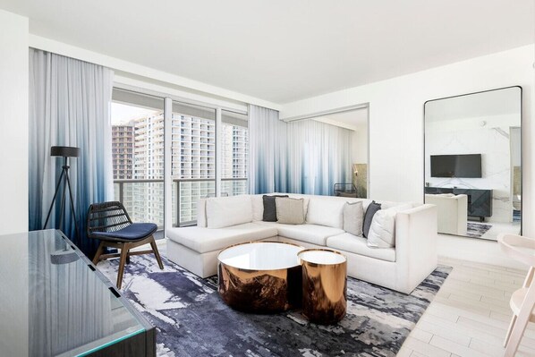 Experience 1,255 sq ft of unrivaled beachfront luxury at the W Resort. This 2BR condo features 180-degree views of the intercoastal, ocean, and Fort Lauderdale skyline.