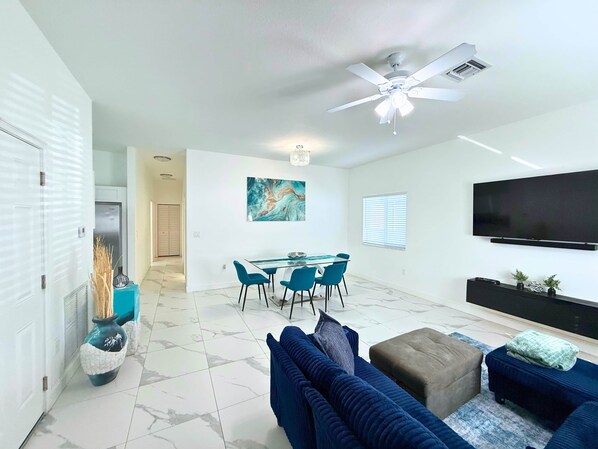 We are a 50 couple from Germany visiting Florida, stayed for 1 full week. Sheldon, the property manager, is a fantastic host. The communication with him was always prompt and accurate. There was no issue with late check-in after 10PM. Sheldon gave us a short walk-in tour at check-in and explained all the details on property. The property is exactly as advertised. VRBO pictures provide enough detail on what to expect. Modern interior, ceramic tiles all-round. Fully equipped kitchen incl. dishwasher, capsule coffee-maker, air grill, etc. The washer/dryer are on property too. Everything was clean and operational, lots of bottled water, a good variety of coffee capsules and packaged snacks. The property is a stand alone small house with comfortable open living/dining/kitchen area. There’s a tiny backyard with a bench under the mango and papaya trees.The location provides an easy connection to everything we needed, be it beaches, shopping, downtown. Within minutes you are on I-95 or Florida Turnpike, also Federal, Powerline or Hillsboro roads are near. Any time of the day, there are multiple choices to beat the traffic. The neighborhood is OK. Having said that, we felt absolutely safe at all times and therefore put 4 stars for a mix of convenient location and neighborhood. Thank you, Sheldon, for your hospitality! You are very smart and humble person, it’s been a real pleasure communicating with you.