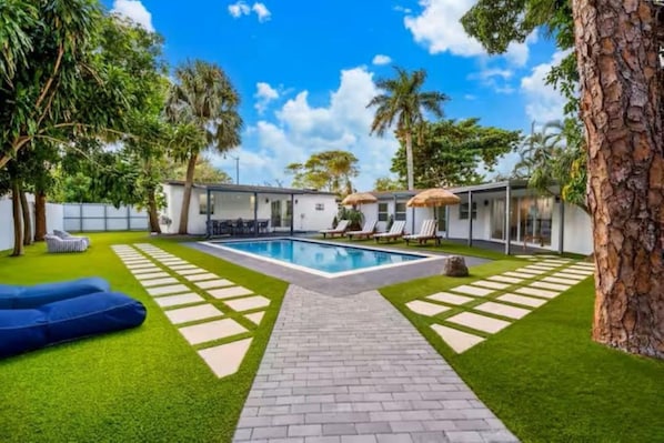 Resort Villa Modern Pool Outdoor Dining ligger i bydelen Pompano Beach Highlands i Pompano Beach. Las Olas Boulevard og Town Center at Boca Raton kjøpesenter er verdt et besøk hvis shopping står på planen, men hvis du heller vil oppleve vakre naturomgivelser, kan du dra til Pompano Beach og Deerfield Beach. Pompano Beach Aquatics Center og Quiet Waters Park er også verdt et besøk. Se vår reiseguide til Pompano Beach