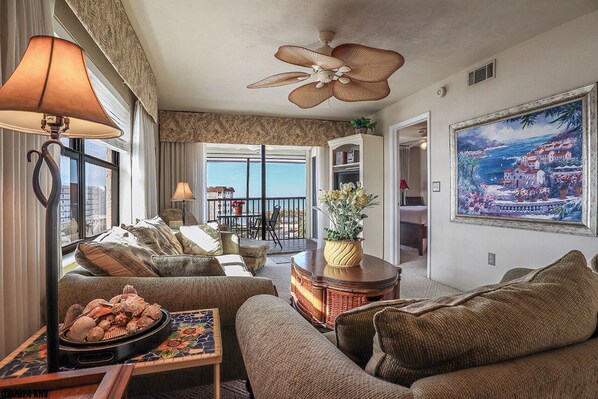 This vacation condo offers an in-unit washer/dryer and free WiFi. The building has a secured elevator and ample on site parking.