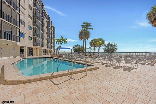 The beachfront pool offers a place for swimming or just enjoying our sun-filled days with great views of the Gulf and Lovers Key State Park. The beachfront at Carlos Pointe is HUGE and extends from Big Carlos Pass to the south and the Gulf to the west. There's a BBQ area, a covered picnic area by the pool, an indoor dining area with a kitchenette, and a social room that overlooks the pool.