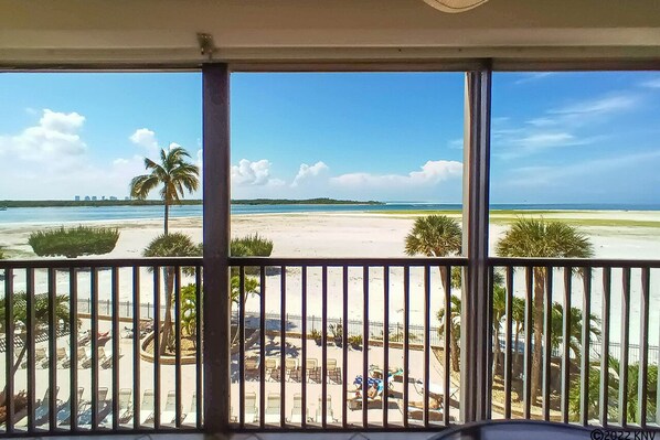 Through the sliding glass doors awaits your glimpse of paradise - a Wrap Around Screened In Lanai with breathtaking views of the Gulf of Mexico and Big Carlos Pass - a place where you will no doubt spend many relaxing hours dining or reading a book while you take in the sea air. You can settle down and watch the boats sail out to the Gulf. Wake in the morning and plan your day while having your morning coffee out. Better yet, start a tradition of enjoying a glass of your favorite wine while watching our world-famous sunsets right from your lanai!