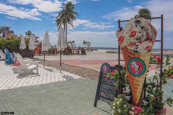 Take the short ride by car or the island trolley to the north end of the island to Old San Carlos Boulevard with loads of new restaurants (and some old favorites), food trucks, bars and Bayside Park. Also at the north end of the island sits Bowditch Point Park with its turtle walk and lively beach where all the boats pass on their way out to the Gulf. You can choose to go south to Lovers Key State Park, where you can hike along nature trails, canoe or kayak along estuaries and bicycle amidst the mangroves or further south to exclusive shopping centers in Bonita and Naples. Now open, Santini Marina Plaza, just next door, will offer you shops, bars, restaurants and a marina, where you can rent a boat or kayak and explore the Great Blue Waterway and mangrove back bays! The island's major supermarket, Publix, is open, as is Snook Bite Marina with its two lively restaurants on the Bay, and is just a 2-mile drive away.
