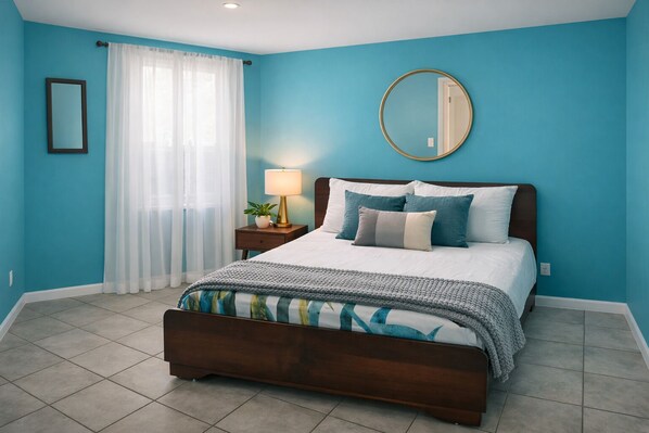 This thoughtfully styled apartment features vibrant colors, clean modern design, and a calm, welcoming atmosphere—perfect for couples, solo travelers, or professionals. The bedroom offers a cozy bed with fresh linens, soft lighting, and tasteful décor that makes it easy to unwind after a long day.