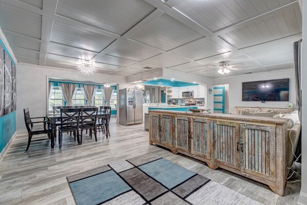 Enjoy your days and nights with family and friends in the spacious Living Room or Florida Room featuring large TV's, a game table, Foosball, board games or just relax for a movie marathon on the plush oversized sectional sofa.