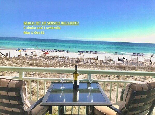 Lovely beach-front condo with free beach setup.
