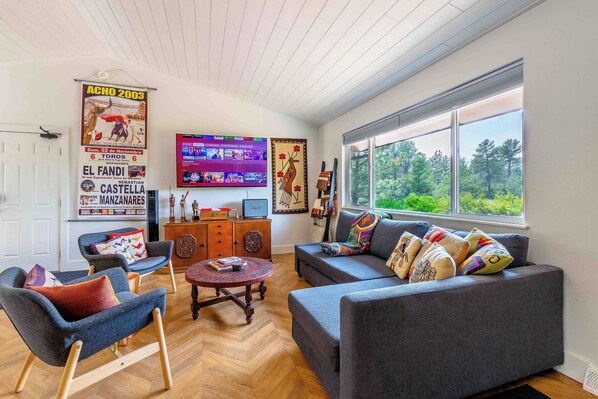 Spanning both the main floor and lower level, our living spaces offer something for everyone. Enjoy movie nights with TVs on both levels, challenge friends and family with board games, or let your adventurous side shine on the indoor rock climbing wall. Cozy lounge chairs and hammocks invite you to kick back and relax, whether you’re reading, napping, or simply enjoying the moment.