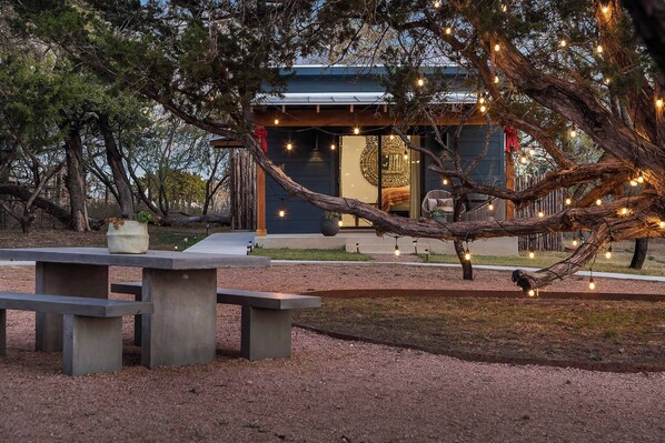 Ololo is a unique hidden treasure consisting of 4 standalone, upscale, modern guest houses revolving around a beautiful old oak tree. The serenity of nature is all around with the likely possibility of seeing different species of wildlife native to the Hill Country. Managed by Heavenly Hosts