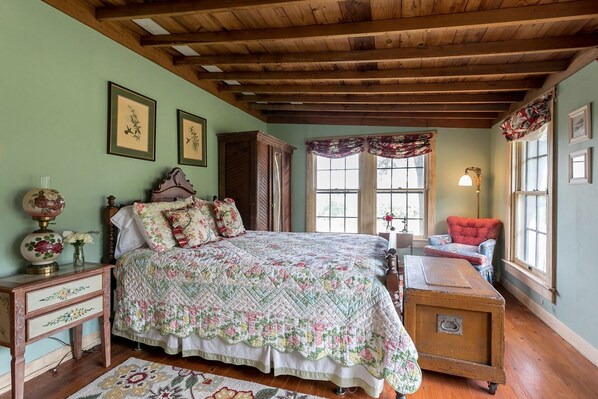 Vertene dine eier også Hill Cottage, som ligger vegg i vegg og flyttet Broadway Cottage til dette nettstedet på slutten av 1990-tallet. Tregulv, morsomme, men elegante vindusbehandlinger finnes gjennom huset sammen med fantastiske, lekne tepper som lyser opp rommene. Stuen / spisestuen har et antikt bord for fire og en fargerik sofa blandet med en rekke design og farger. To andre stoler er plassert perfekt for å se på direkte-tv eller bare for å glede deg til å besøke. Det er to soverom begge med queen-size-senger toppet med dyner. To bad har dusj. En komfortabel lesestol finnes på soverommet sammen med et antikt armoire.