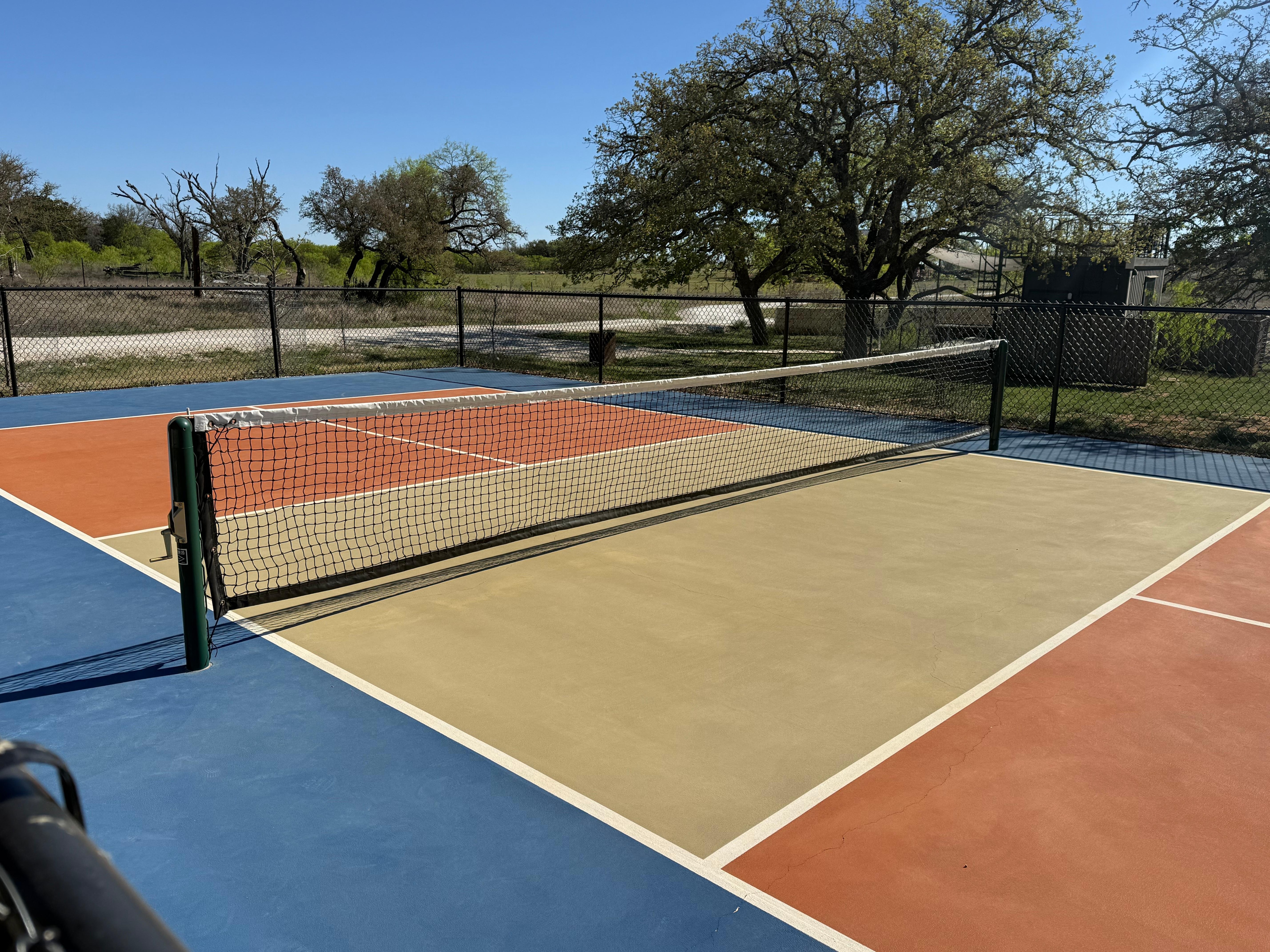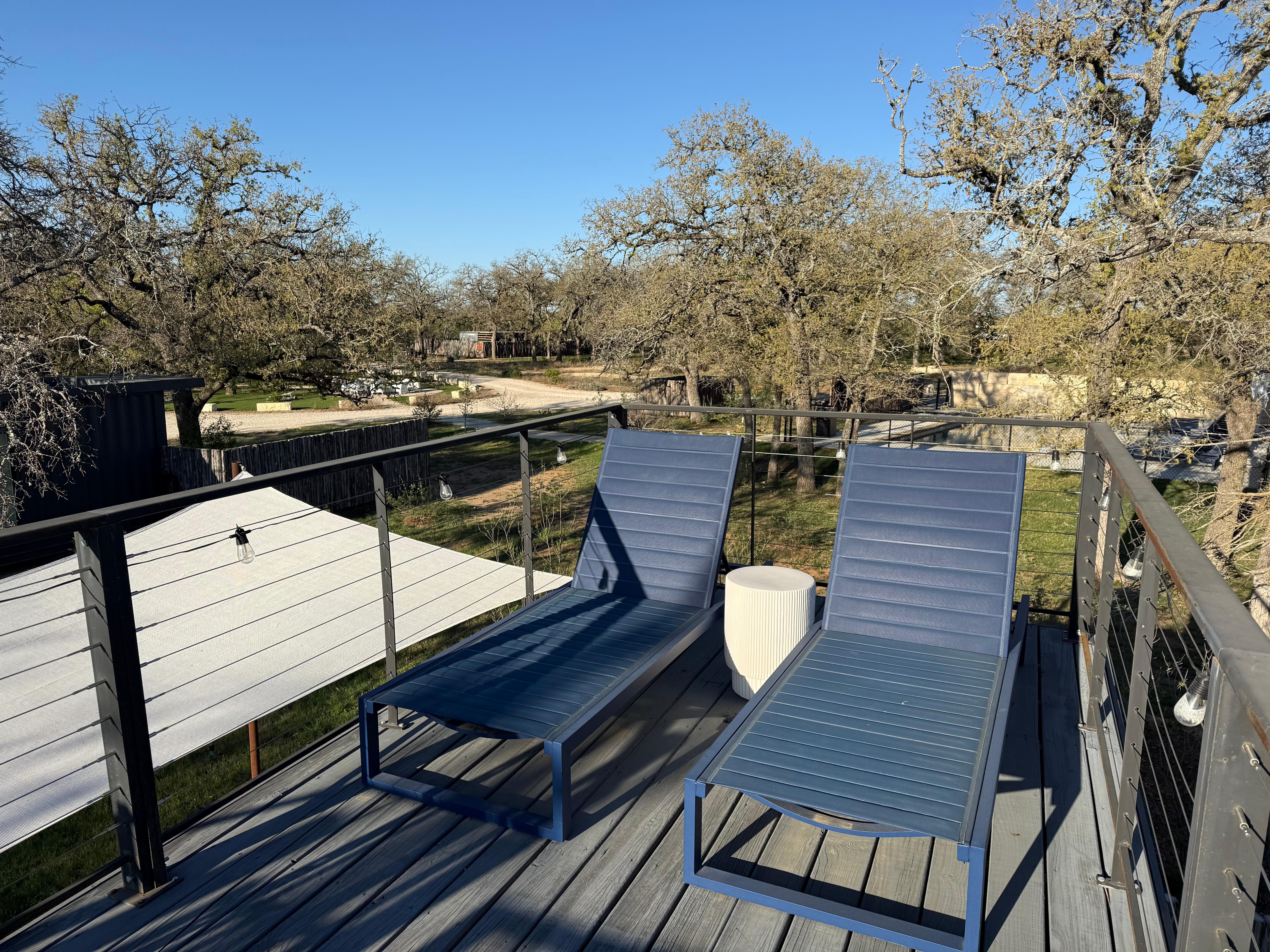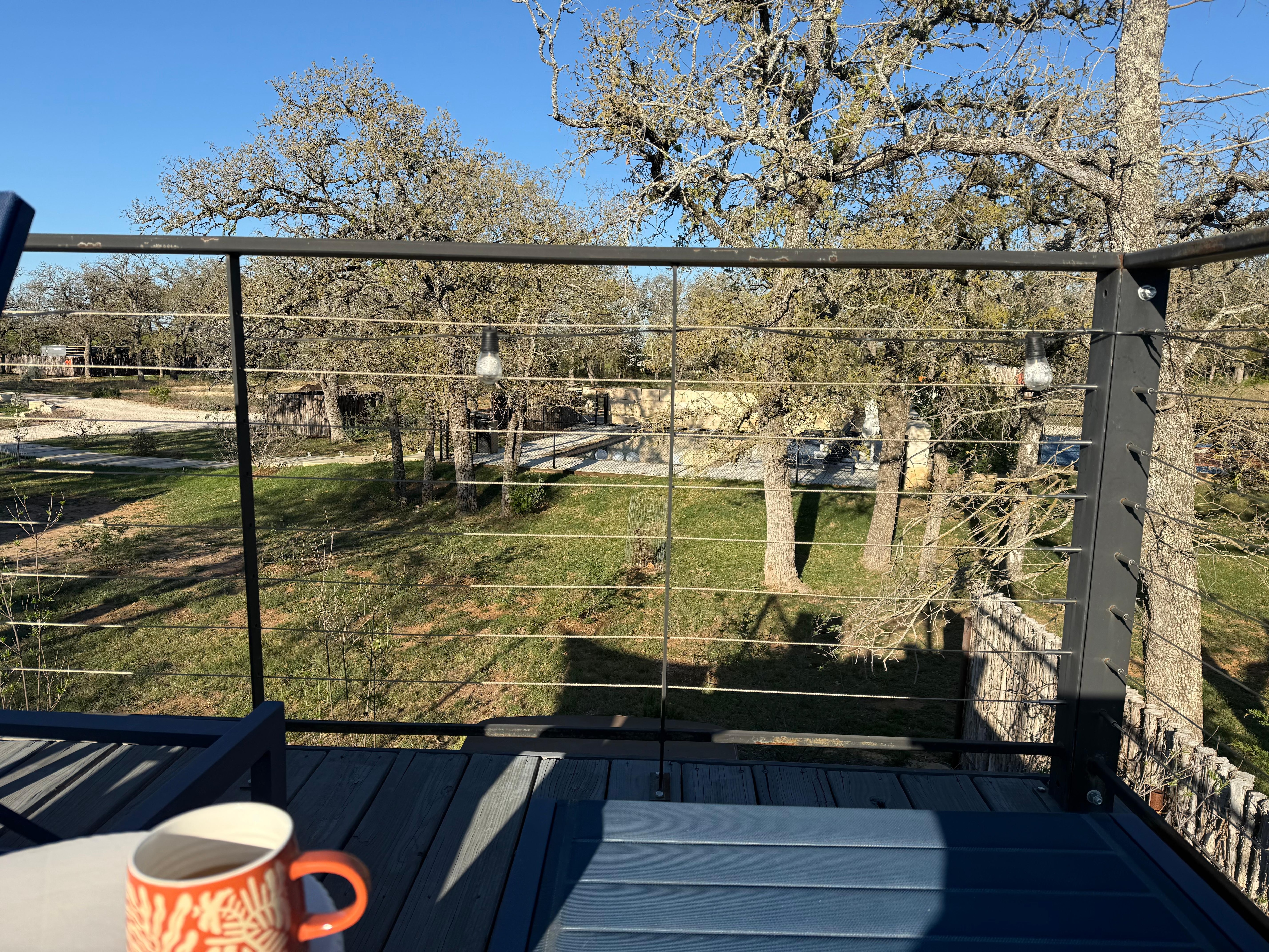 Room was super nice and very clean. The decor was quite pleasing. The communication was perfect. We drove in late to the property and the ease of locating our cabin was perfect. After loving the cabin from the beginning the comfort and quietness only added to the experience. The morning brought chirping birds and a cool breeze on the above cabin deck, accessible by a nice little spiral staircase. Excellent place to enjoy a cup of coffee. Location is perfect ; just minutes away from downtown Fredericksburg. Comfort was excellent. We never used the hot tub but o did take a look. Just as clean and inviting as the cabin and property. We plan to return and enjoy all there is there to enjoy. There’s a beautiful fire pit, cornhole boards and a place to play bocce ball. Also a beautiful pool and awesome pickleball court. Pickleball paddles and balls included with the cabin. Can’t wait to return. What a find!