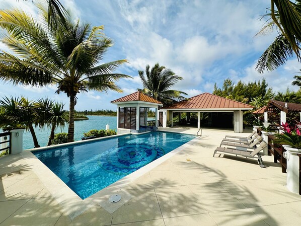Villa Lucaya is a tropical oasis with over 300 feet of water frontage on the crystal-clear Grand Lucayan Waterway. Stretching across Grand Bahama, the waterway serves as a navigational channel for boaters and allows ease of access to the north and south sides of the island for all of your fishing, diving, and boating needs.