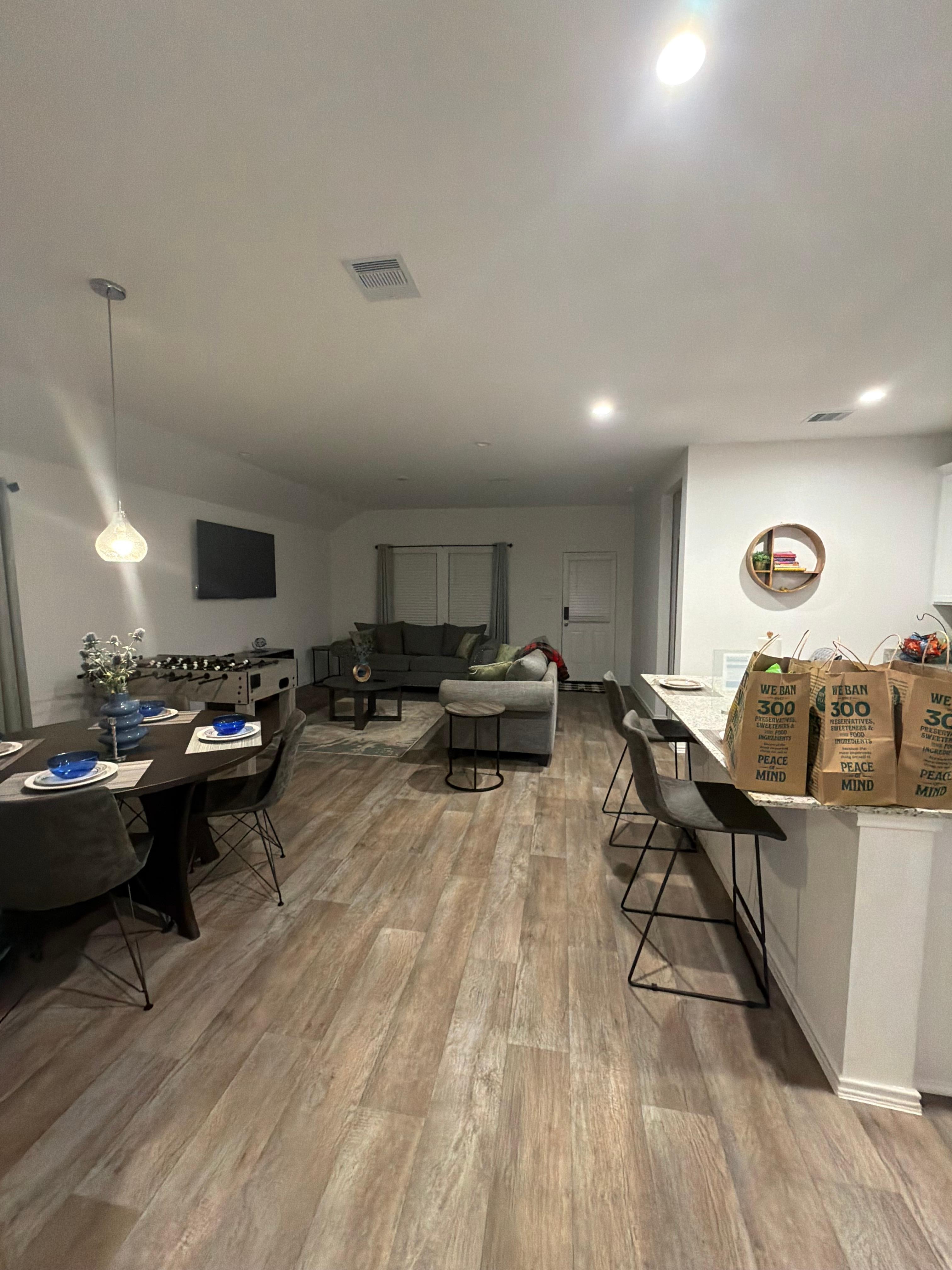 Exactly as shown in pictures, the whole home was clean, spacious and the host was very kind and responsive to any questions we had. The kids (3&5) loved the toy table that was located in the kitchen- definitely an unexpected bonus!- I highly recommend this property if you’re considering visiting the Houston area, travel time was better than expected to ColorFactory and Dig World and the neighborhood is very much quiet and not too busy.