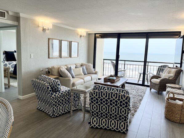 HUGE Corner condo with view of pleasure pier, 3 private balconies and penthouse views!
