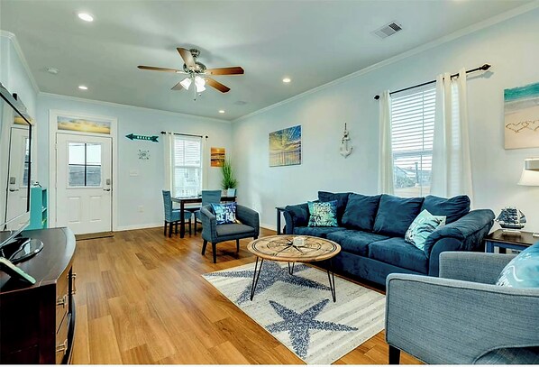 PLEASE NOTE HOME IS CURRENTLY FOR SALE. Guest reservations are a priority over home showings and will be scheduled around those. Kick off your shoes and enjoy the endless seaside entertainment awaiting you at Bummin' it Barefoot! This 3/2.5 home has it all- large backyard, covered patio, fire pit, stocked kitchen and bathrooms. Pack up the chairs and toys in the wagon (all provided) before heading over to the beach for the day or choose one of the wonderful amenities of Galveston nearby. Please note the 3rd BR is located below the main house and is not connected. Perfect for small families or a group of friends wanting to soak in the sun and sights of Galveston while having all the comforts of home. When we can accommodate early check in is available.