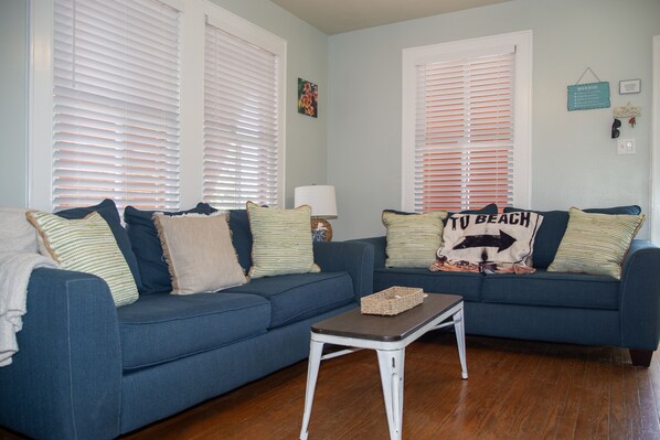 Hjemets originale tregulv, og 10 ft tak er til stede i hele huset. Kjøkkenet er fullt utstyrt med alt du trenger for å forberede alle dine måltider, inkludert en mikrobølgeovn. For enkelhets skyld er alle kjøkkenutstyr, tallerkener, kjøleskap med full størrelse, komfyr / stekeovn, oppvaskmaskin, kaffekanne, brødrister, blender, alt sengetøy, noen badehåndklær og mer.