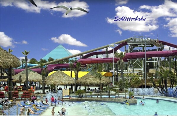 Ved stranden med utendørsbasseng, nær Galveston Schlitterbahn Waterpark
