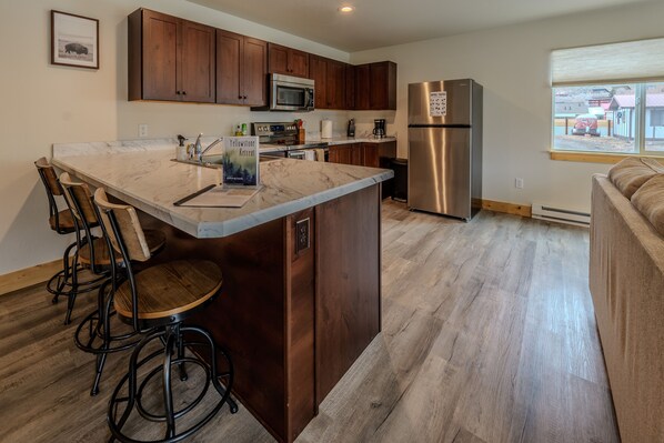 Welcome to Yellowstone Retreat Rentals! Built in 2021, our two bedroom one bathroom apartments carry all the necessities you need to visit Yellowstone. The apartment is located only four blocks from the historic Roosevelt Arch, the North Entrance to Yellowstone. We are also located a few blocks from Arch Park, which provides grills, a gazebo and picnic tables, and the neighborhood elk that tend to hang out there. With our convenient location, you will also be close to all of the wonderful shops and restaurants our little town has to offer. We have BRAND NEW MATTRESSES delivered in April of 2025.